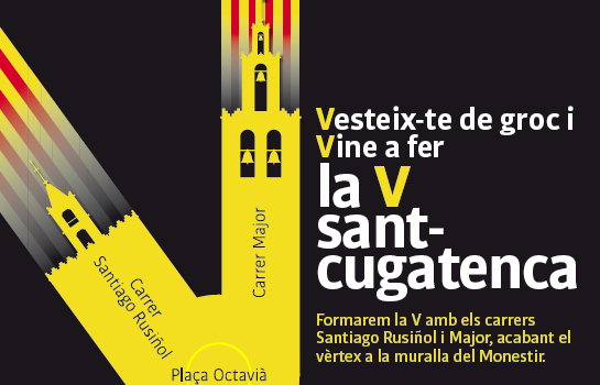 El simulacre de la V arriba un any després de que Sant Cugat també fes la seva pròpia cadena humana prèvia a la Via Catalana que centenars de milers de catalans van unir Catalunya de nord a sud durant la Diada.
