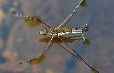 Es tracta d’un heteròpter aquàtic del gènere Gerris que crida molt l’atenció pels seus moviments, ja que sembla com si caminés sobre l’aigua, encara que en realitat es desplaça recolzant-se en les seves potes, que tenen uns coixinets amb pèls que aconsegueixen formar una petita bossa d’aire sobre la superfície de l’aigua, la qual cosa el manté en flotació constant.