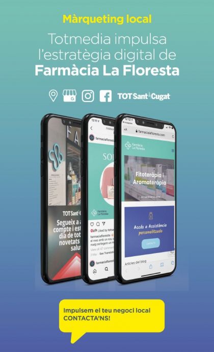 Totmedia, l'agència de màrqueting local i el TOT Sant Cugat, mitjà líder a la ciutat, impulsen l'estratègia digital de la Farmàcia La Floresta. S'ha desenvolupat la nova pàgina web de la farmàcia, adaptada a tots els dispositius i optimitzada per cercadors, amb l'objectiu de tenir més presència a internet i augmentar les visites de clients potencials. A més, s'ha potenciat l'estratègia de xarxes socials (Instagram i Facebook). L'estratègia digital té com a objectiu augmentar la comunitat a les xarxes socials, la presència de la marca a internet i arribar a nous públics.