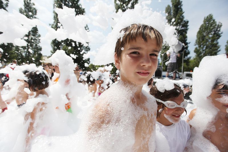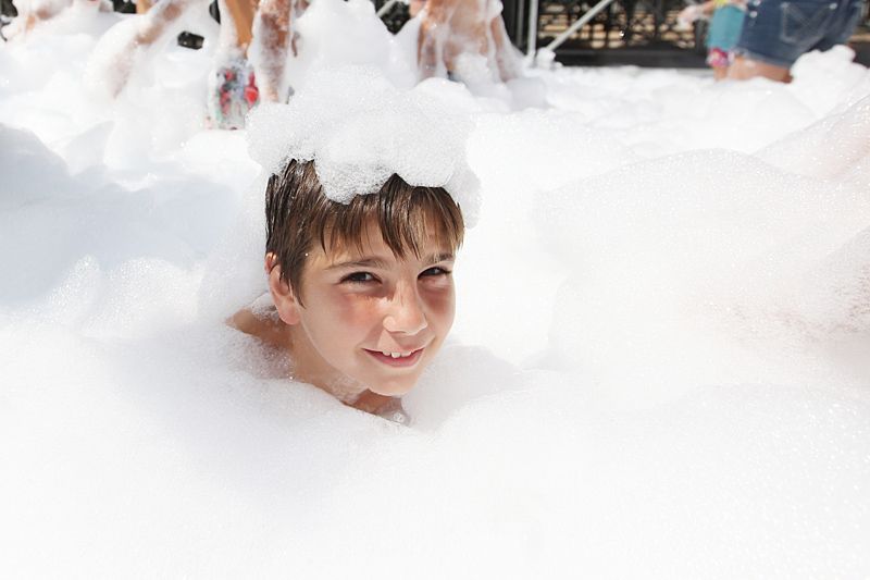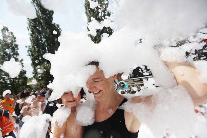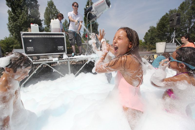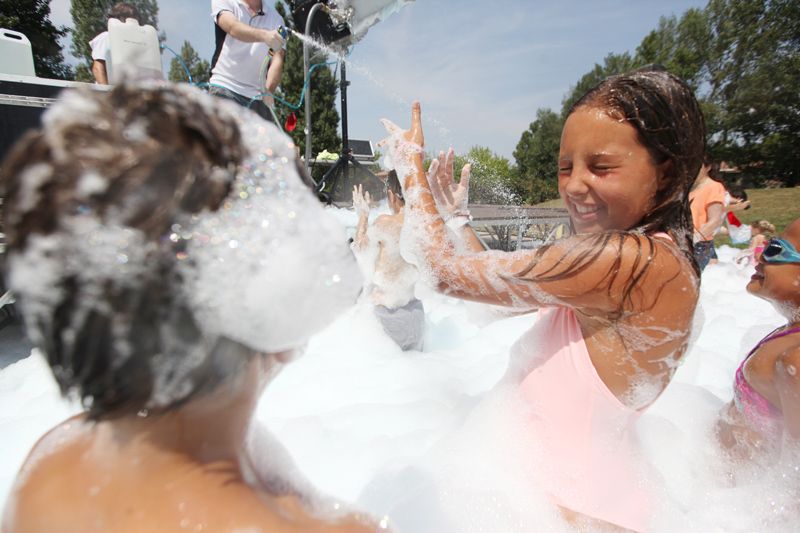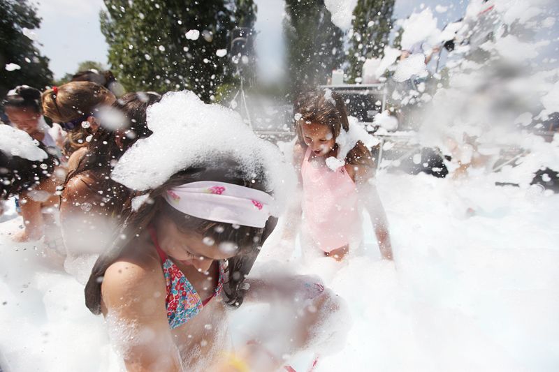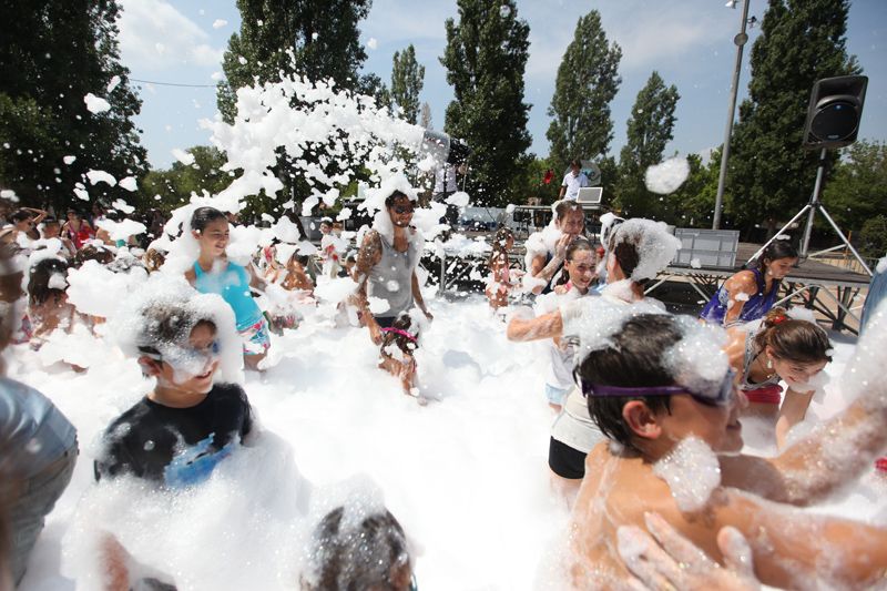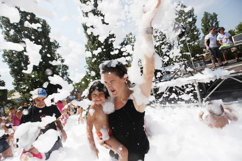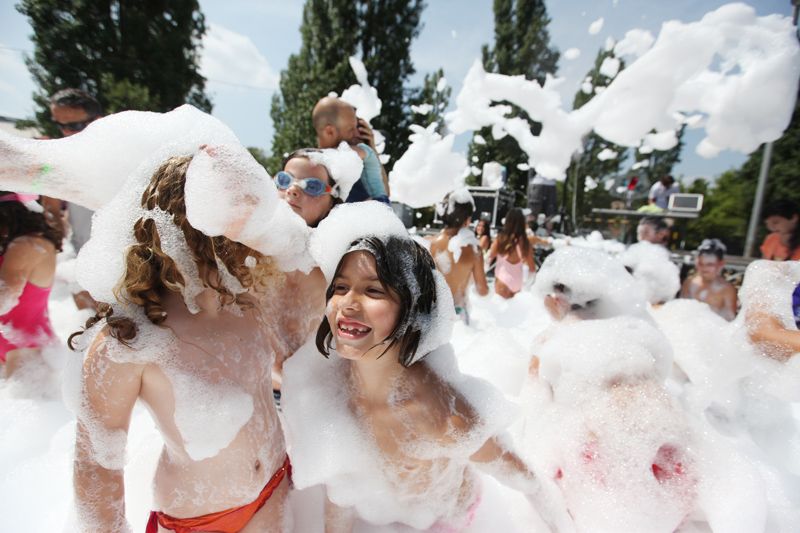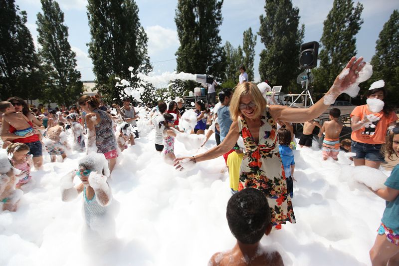 Festa de l'escuma amb l’Espectacleria a la pista de davant del Casal de Mira-sol. FOTOS: Lali Puig