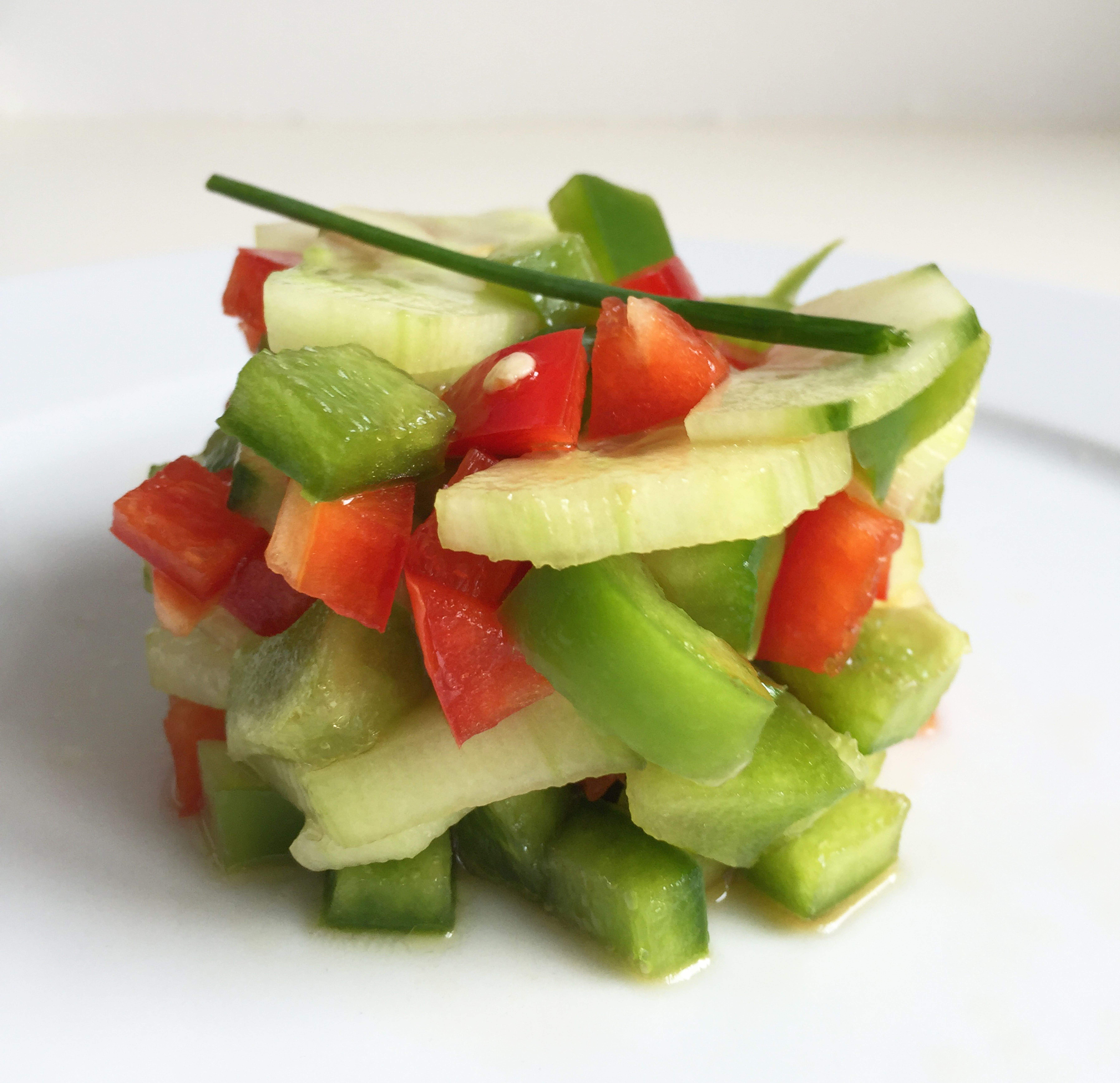 Plat acabat. A taula! En aquest plat són més importants les verdures que el bacallà. Podríem dir que és un àpat quasi vegetarià! Pipirrana no serà un popurri?