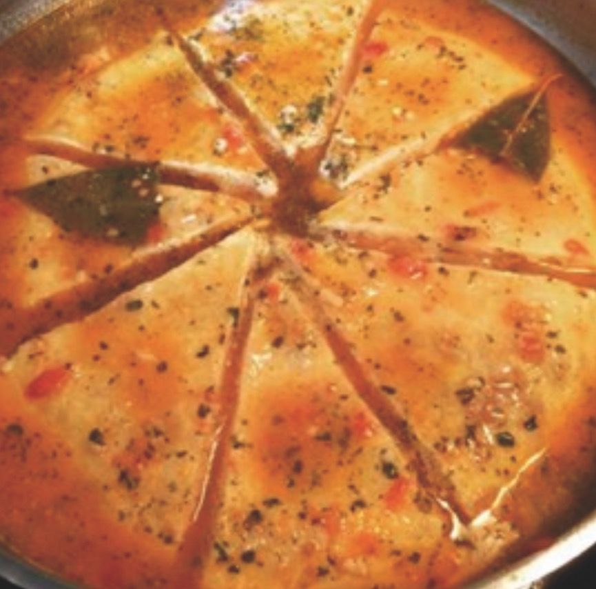 Fem les truites de fesols i espinacs i les deixem refredar. A la cassola de terra hi posem oli i farina. Quan la farina es comenci a daurar, hi tirem la picada següent, que tindrem preparada al morter: alls, julivert, el pebre d’olor i la molla de pa mullada amb el vi negre.
