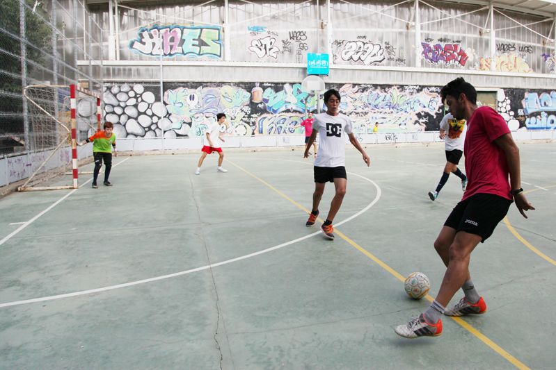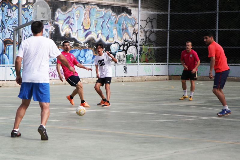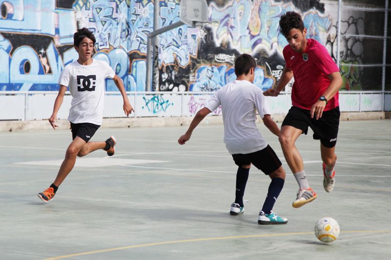 Visita de Jordi Campoy al Campus d'Estiu del Futbol Sala Sant Cugat a la ZEM Rambla del Celler. FOTOS: Lali Puig
