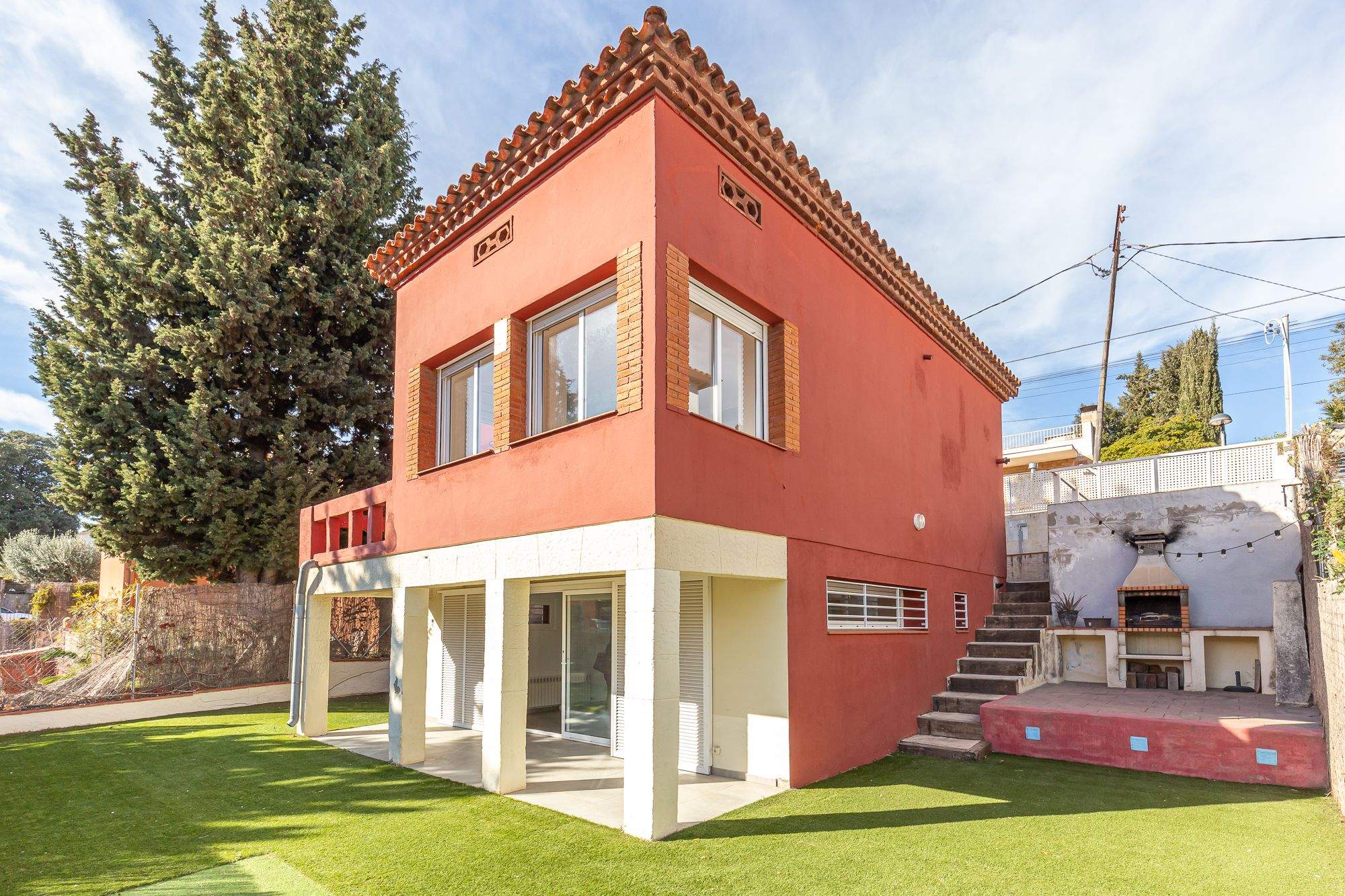 La casa té un agradable jardí amb vistes i orientat a sud, zona barbacoa, porxo i terrassa, i també disposa d'una plaça de garatge. També disposa de fusteria exterior d'alumini amb doble vidre i amb tanques de seguretat, calefacció de gas natural, caldera nova i aire condicionat.