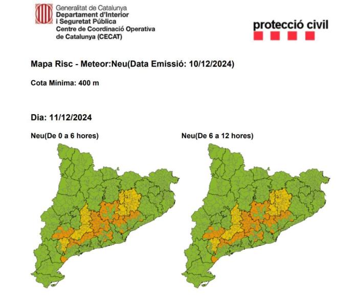En concret, no es descarta que la neu es deixi veure en cotes d'aquesta altitud a l'Alt Camp, l'Anoia, el Bages, el Baix Camp, la Conca de Barberà, les Garrigues, el Lluçanès, el Moianès, Osona, el Priorat, la Segarra, els Vallès Occidental i el Vallès Oriental.