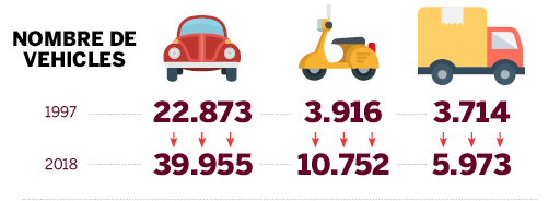 El número de vehicles que circulen per Sant Cugat ha crescut de manera molt important els darrers anys. En vint anys, els cotxes de santcugatencs han passat de 22.800 a gairebé 40.000 i les motos s’han multiplicat per tres. La contaminació de l’aire i el col·lapse de carrers són dues de les conseqüències.