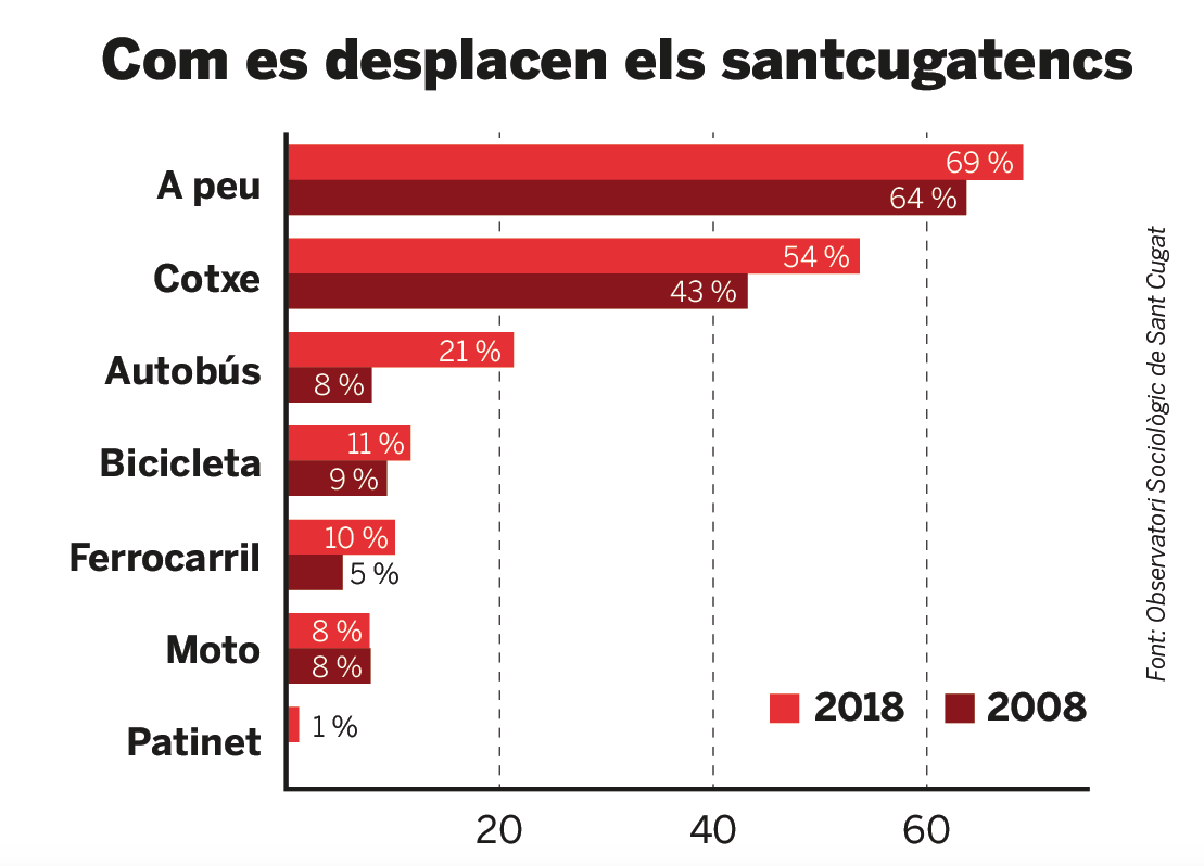 *Dades de l'Observatori Sociològic. El total no suma 100% perquè cada santcugatenc pot desplaçar-se amb més d'un mitjà de transport.