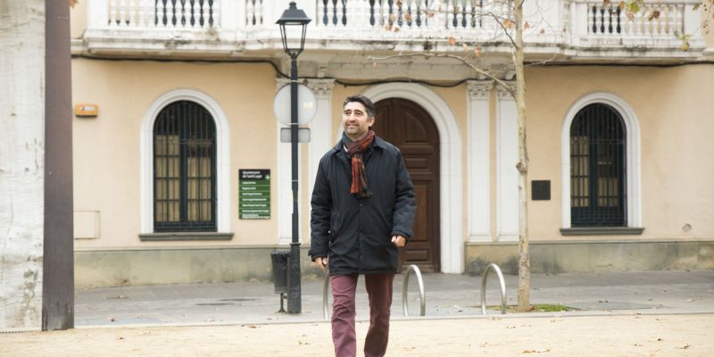 Jordi Puigneró a la plaça de Barcelona, davant de l'antic ajuntament, on va debutar de regidor FOTO: Bernat Millet