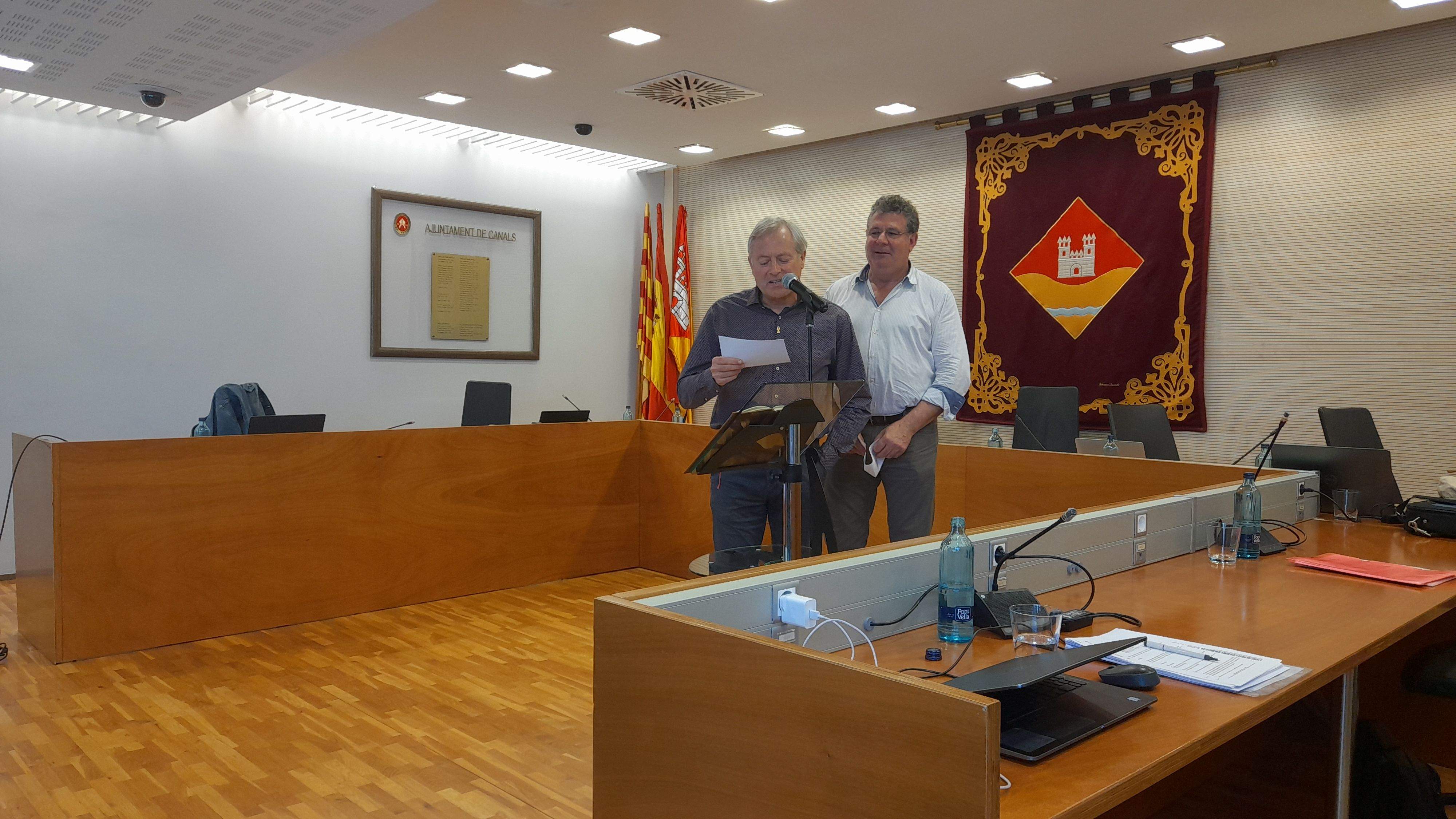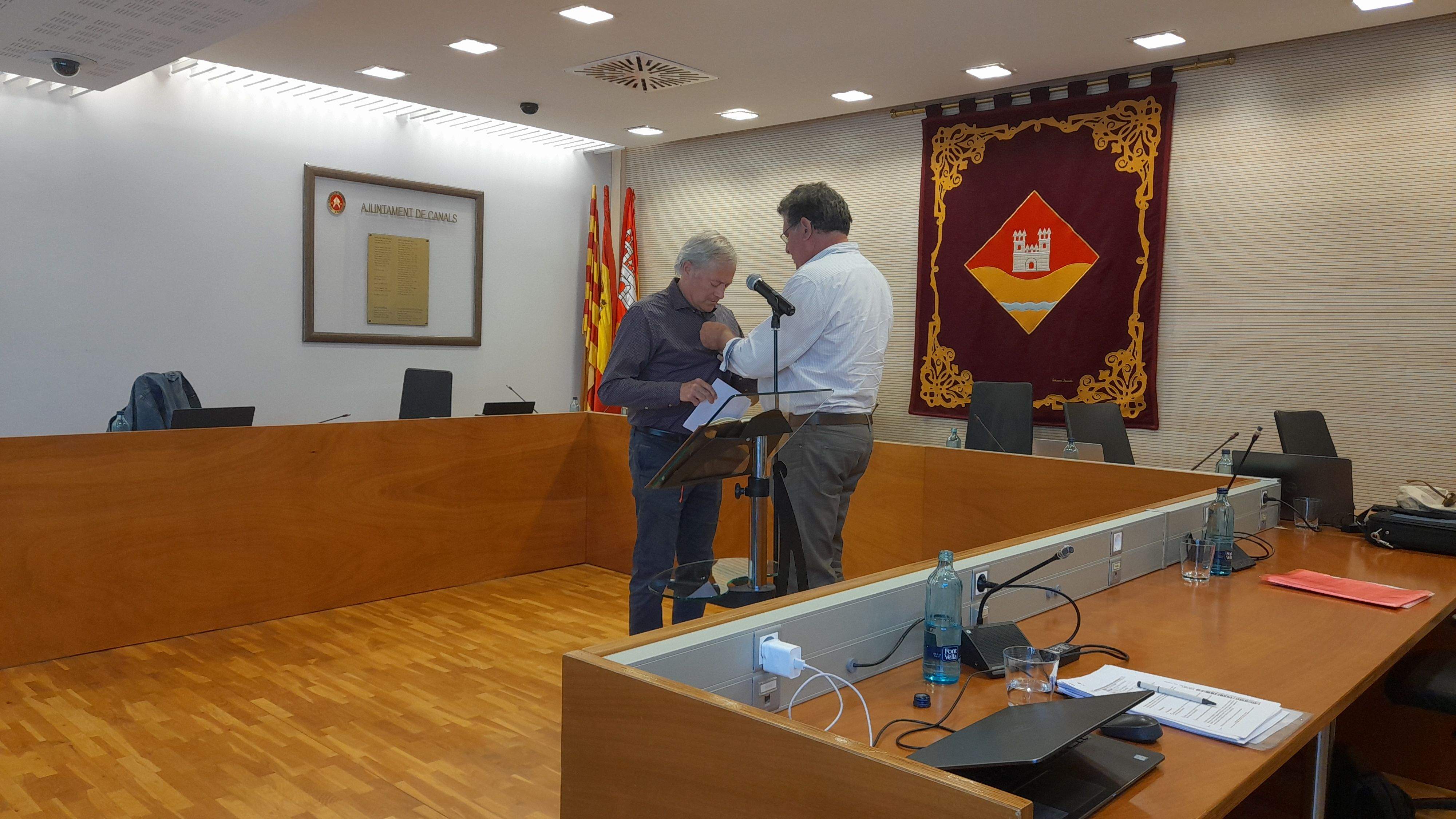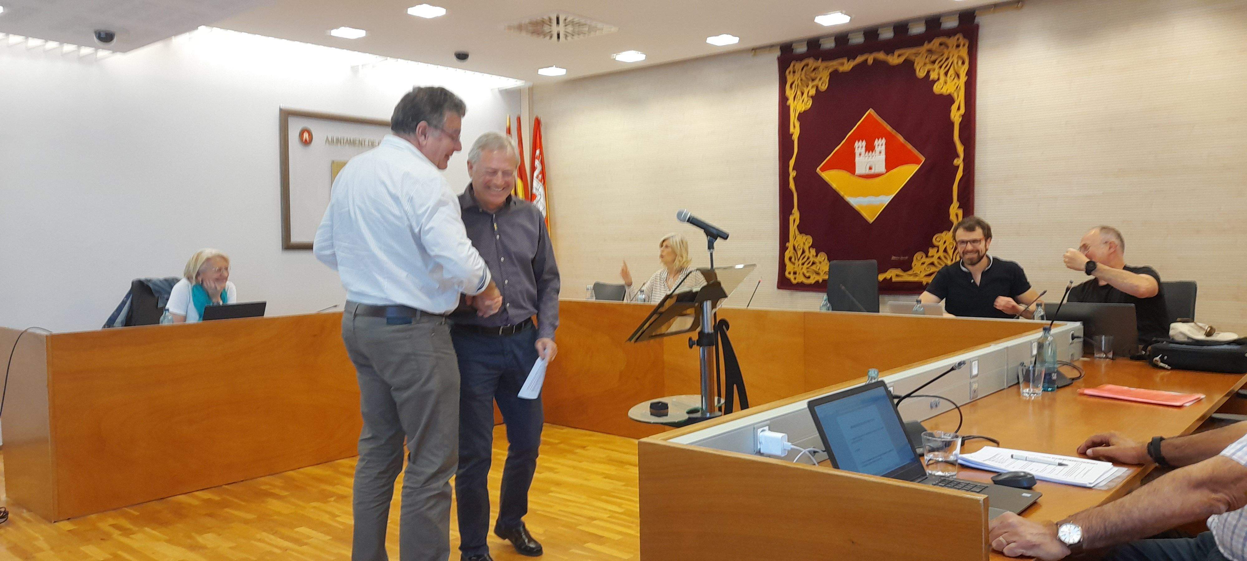 Ramon Segura pren possessió com a vocal davant el president de l'EMD, Josep Puig. FOTO: Cristina Cabasés