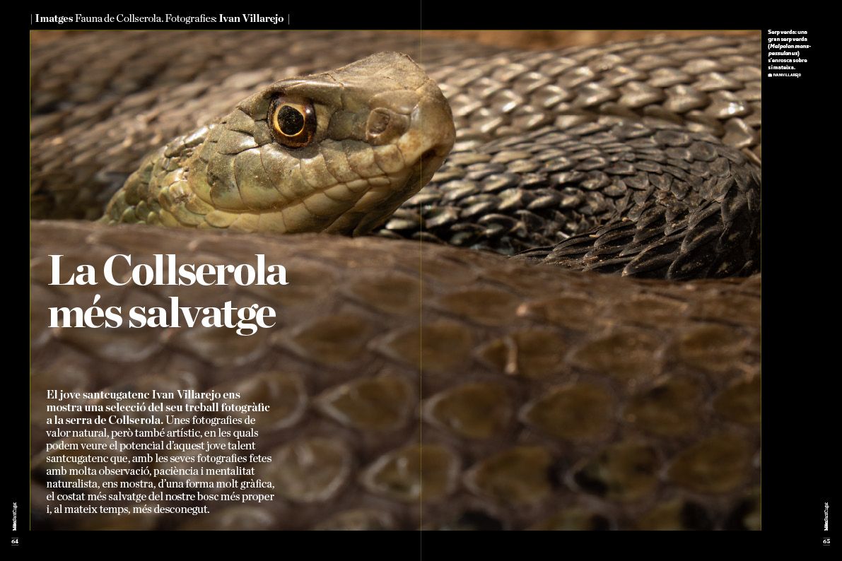 Ens endinsem en el nostre parc natural i destaquem la importància i tots els reptes de futur que té aquesta serralada per Sant Cugat i el seu entorn. Parlem amb els seus protagonistes i expliquem el valor natural, patrimonial, social i com podem gaudir amb respecte del parc natural amb més pressió de Catalunya. Amb aquesta voluntat, aquesta edició, vol posar la seva engruna de coneixement, consciència i estima del nostre entorn natural. Mostrem, entre altres protagonistes, l'Ivan Villarejo, un jove talent santcugatenc que observa i fotografia fauna de Collserola i arreu com ningú. Ens explica el treball sobre la geneta i ens mostra una selecció de fotografies inèdites de la Collserola més salvatge.