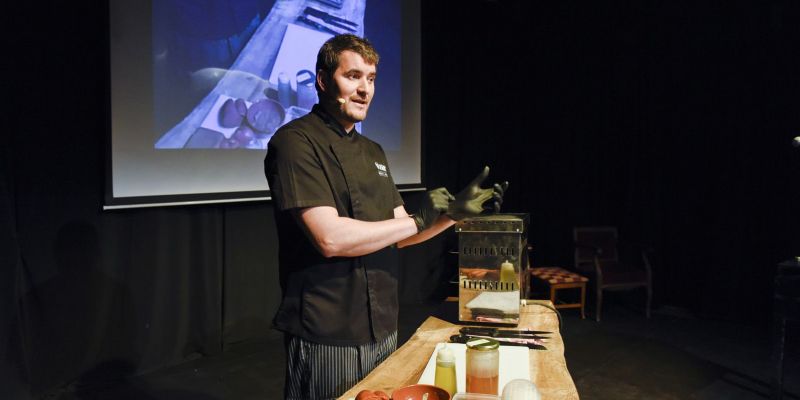 Showcook d'Oriol Gràcia, xef del restaurant VdGust. FOTO: Bernat Millet