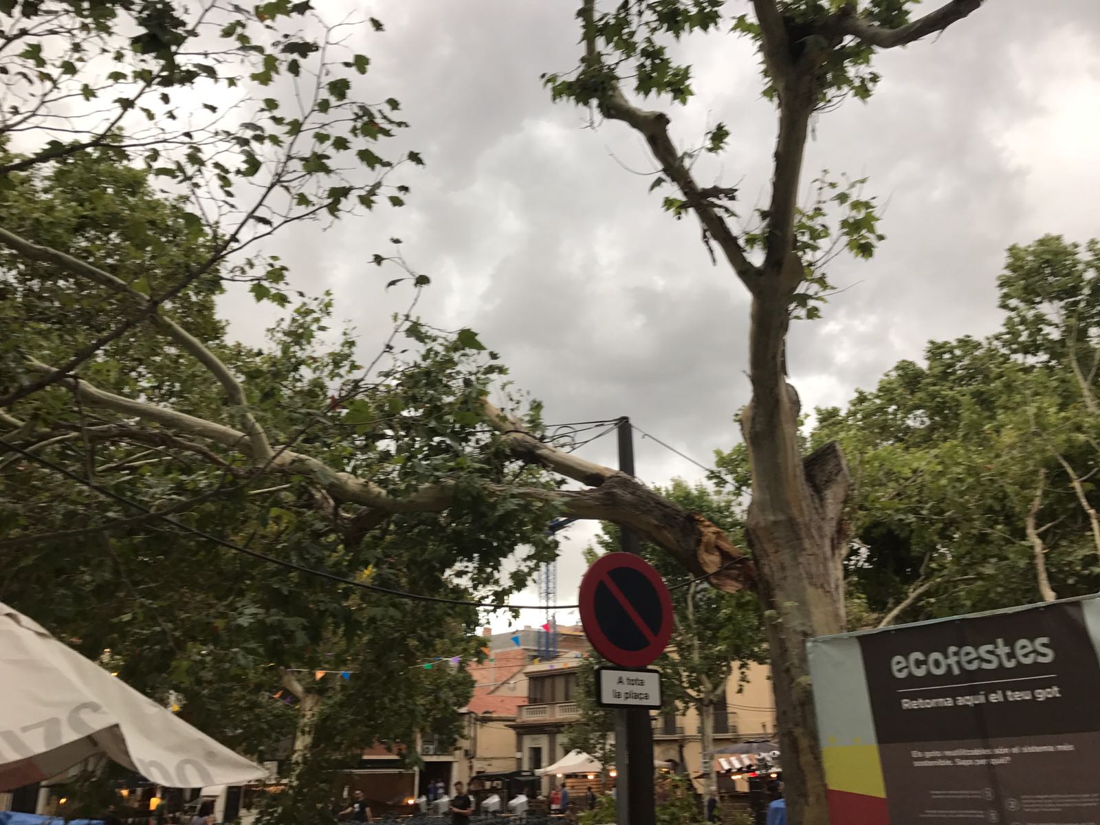 Durant una estona, la plaça ha quedat desallotjada, mentre el personal municipal treballava en les tasques de retirada de la branca. El concert previst per a les 21 hores començarà més tard.