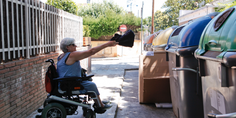 "El que em molesta molt és que tinc consciència de reciclar i no arribo als contenidors, perquè els posen al carrer i des de la vorera no s'arriba. Jo vull reciclar i no puc. I vull ser autònoma, no puc estar sempre demanant a la gent que em tirin la brossa", denuncia.