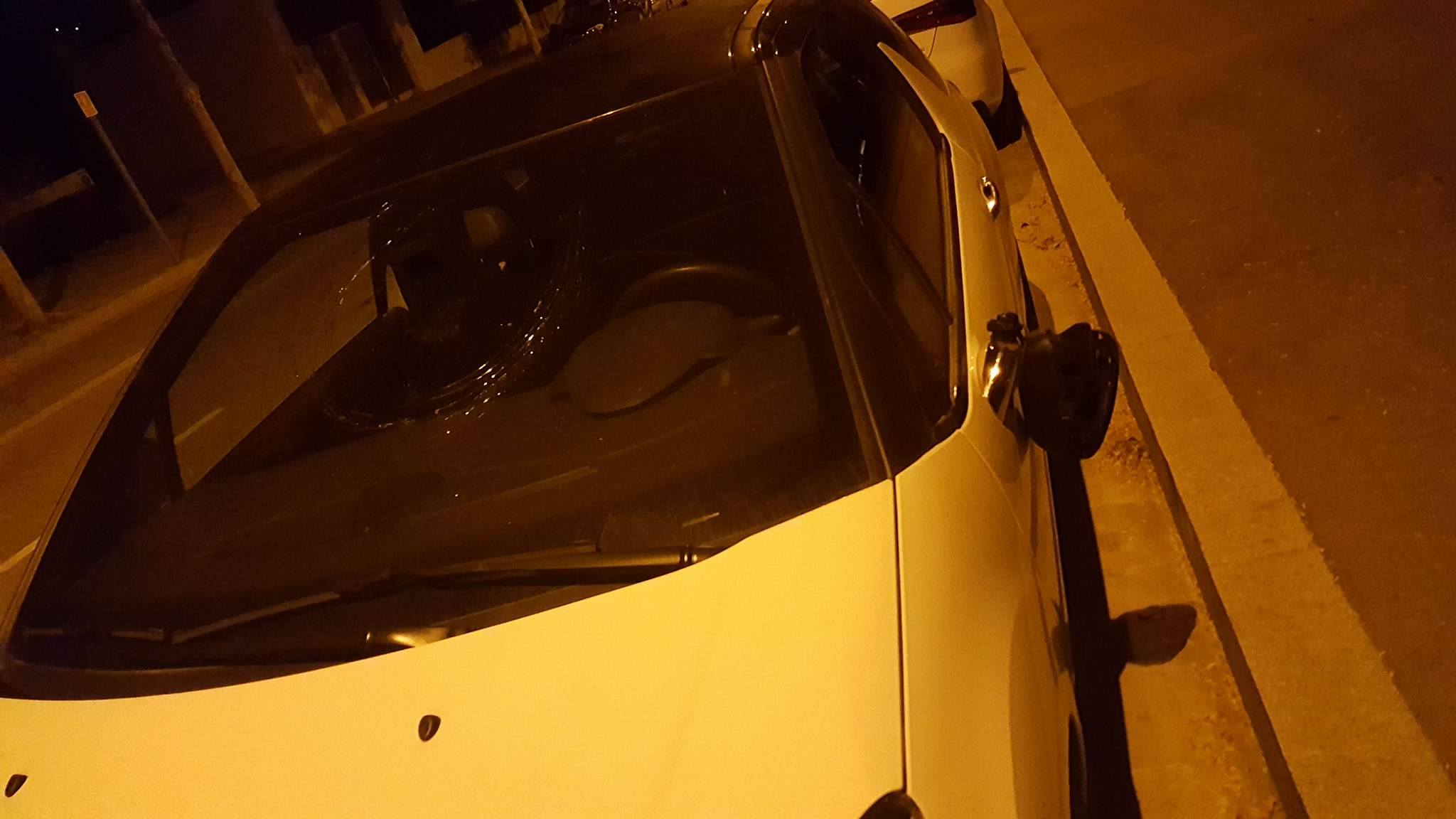 En el seu cotxe va veure el sostre amb ratllades i tot de petjades de fang, ja que un dels joves hi va saltar a sobre. També tenia el vidre de davant trencat, com a conseqüència d'un cop de peu, i un retrovisor trencat. En aquell moment passava una patrulla de la Policia Local pel carrer i els va aturar per explicar la situació; i l'endemà va posar una denúncia.