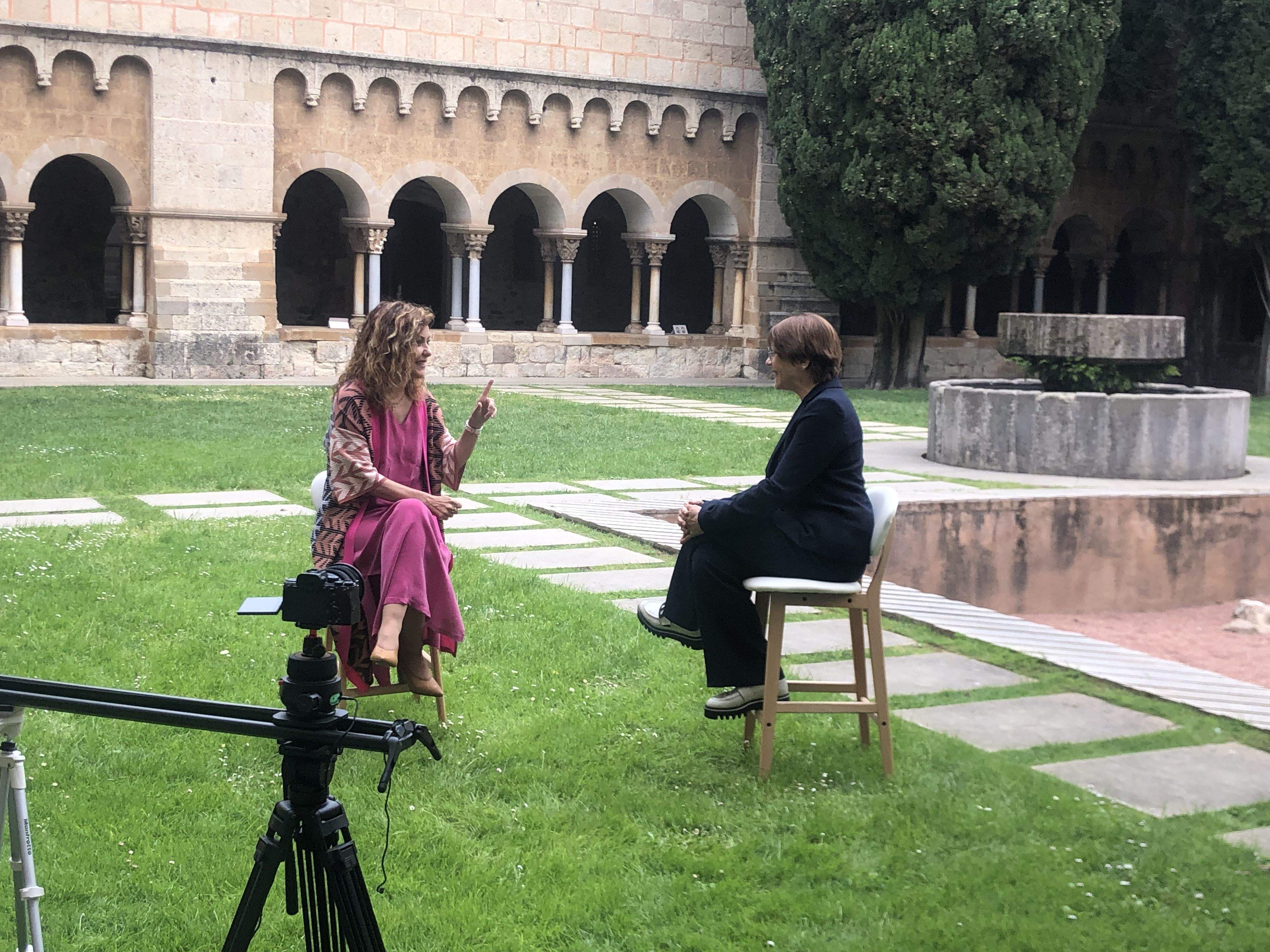 Entrevista de Maria de la Pau Janer a Emma Vilarasau per a 8TV al Claustre del Monestir. FOTO: Ajuntament