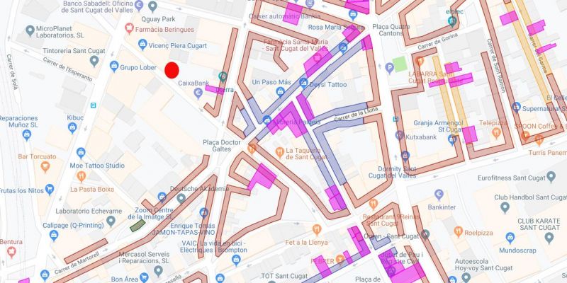 Part del Catàleg de patrimoni de Sant Cugat al centre. En vermell, la casa enderrocada