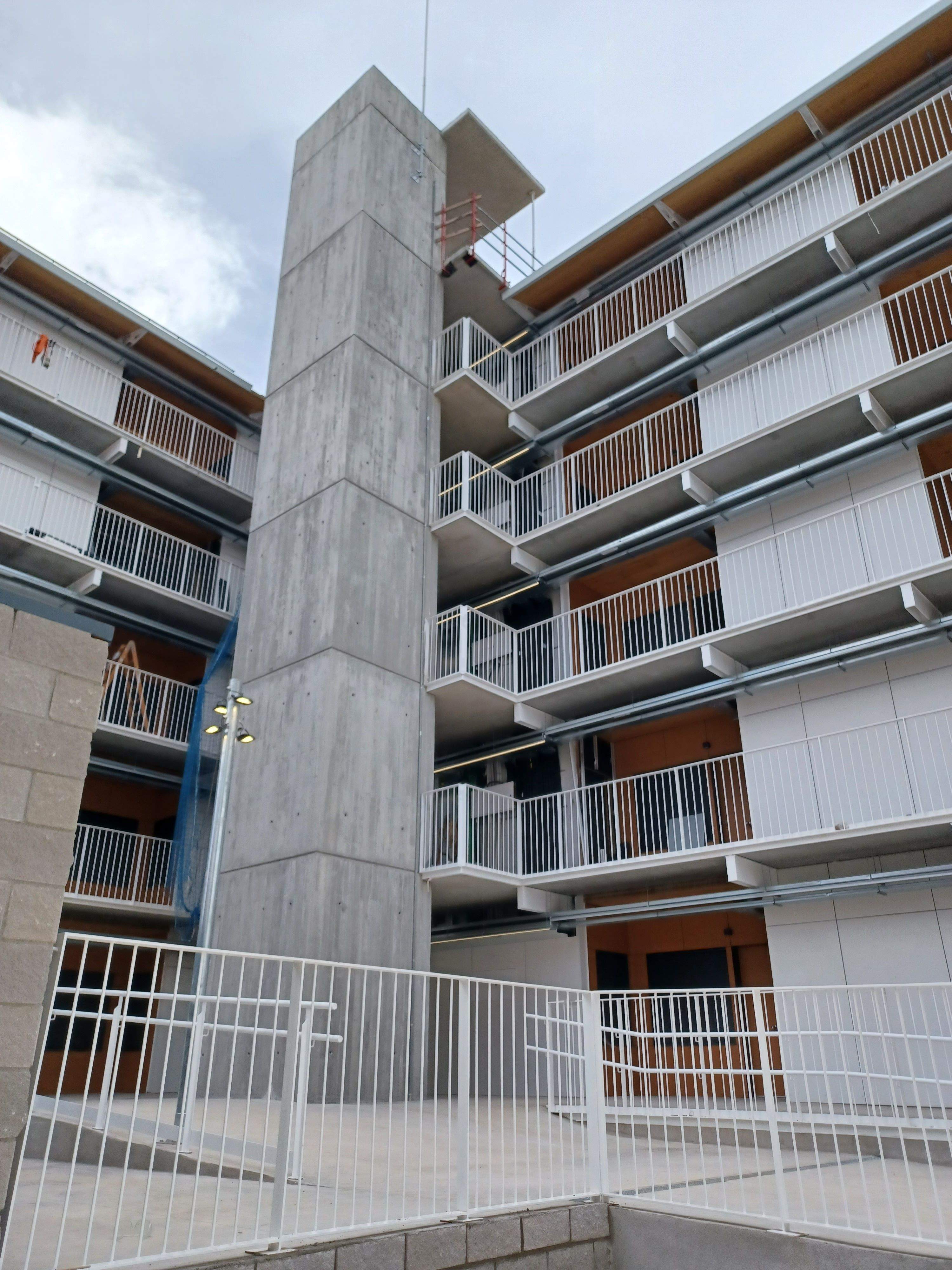 L'edifici, constituït per una planta baixa i quatre plantes, té 50 habitatges de 3 dormitoris, 8 habitatges de 2 dormitoris i 2 habitatges de 2 dormitoris reservats per a persones amb mobilitat reduïda.