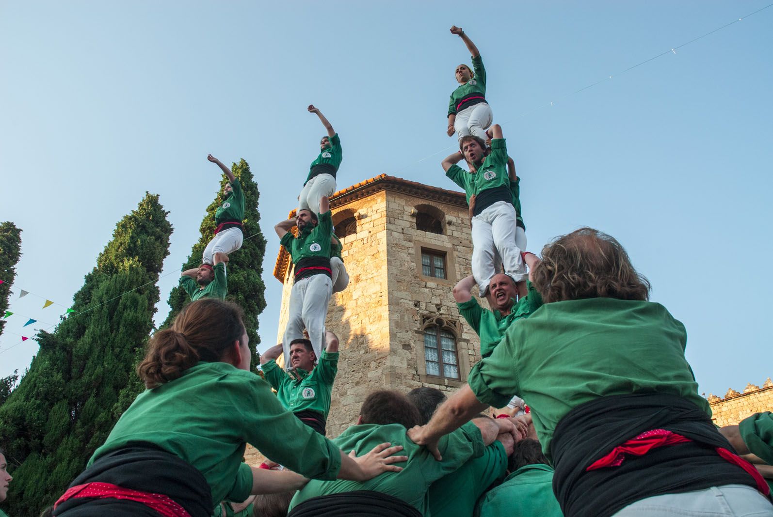 La colla, però, sí que ha descarregat el 4 de 8 i el 3 de 8, i la Diada Castellera de Festa Major, la vintena de la colla, ha ofert un espectacle a l’alçada amb el Monestir com a teló de fons.