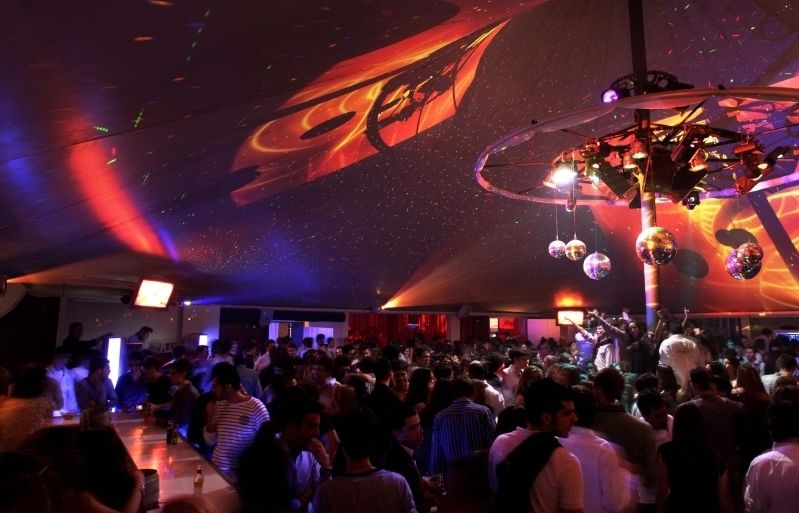 - La Carpa: sala amb sofàs de cuir blanc i ambientada amb grans hits del pop, el rock i el dance.