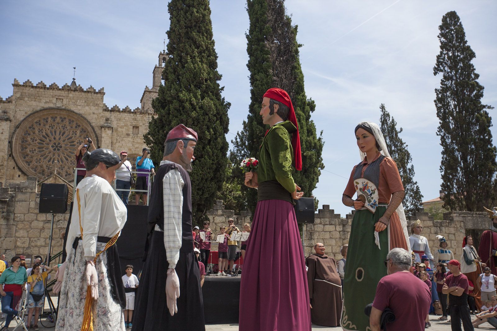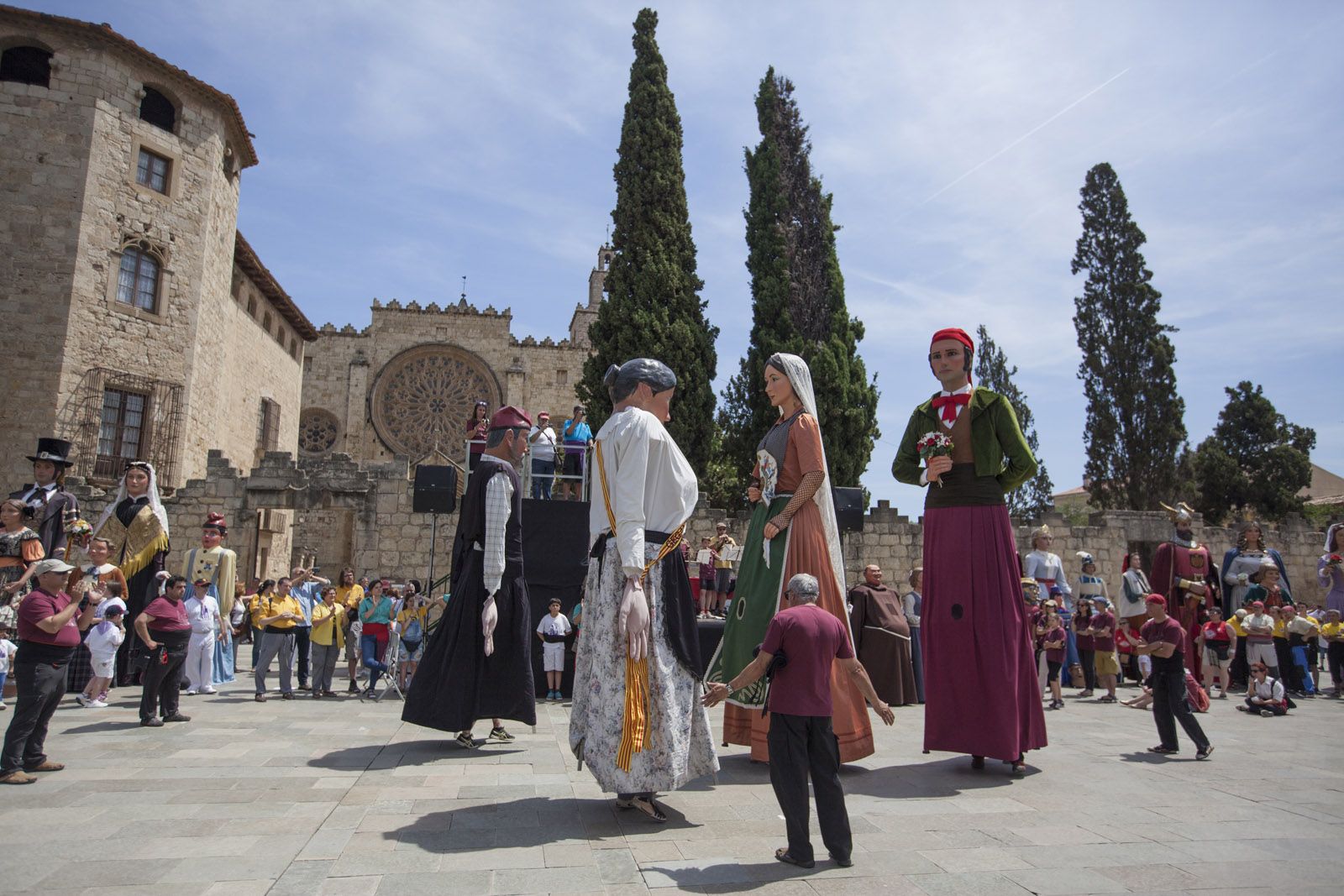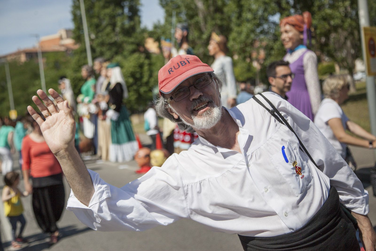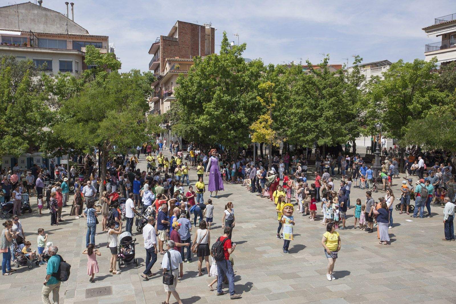 Recepció dels padrins de l’agrupació, els Gegants de Rubí a la Plaça d’Octavià. FOTO: Lali Puig