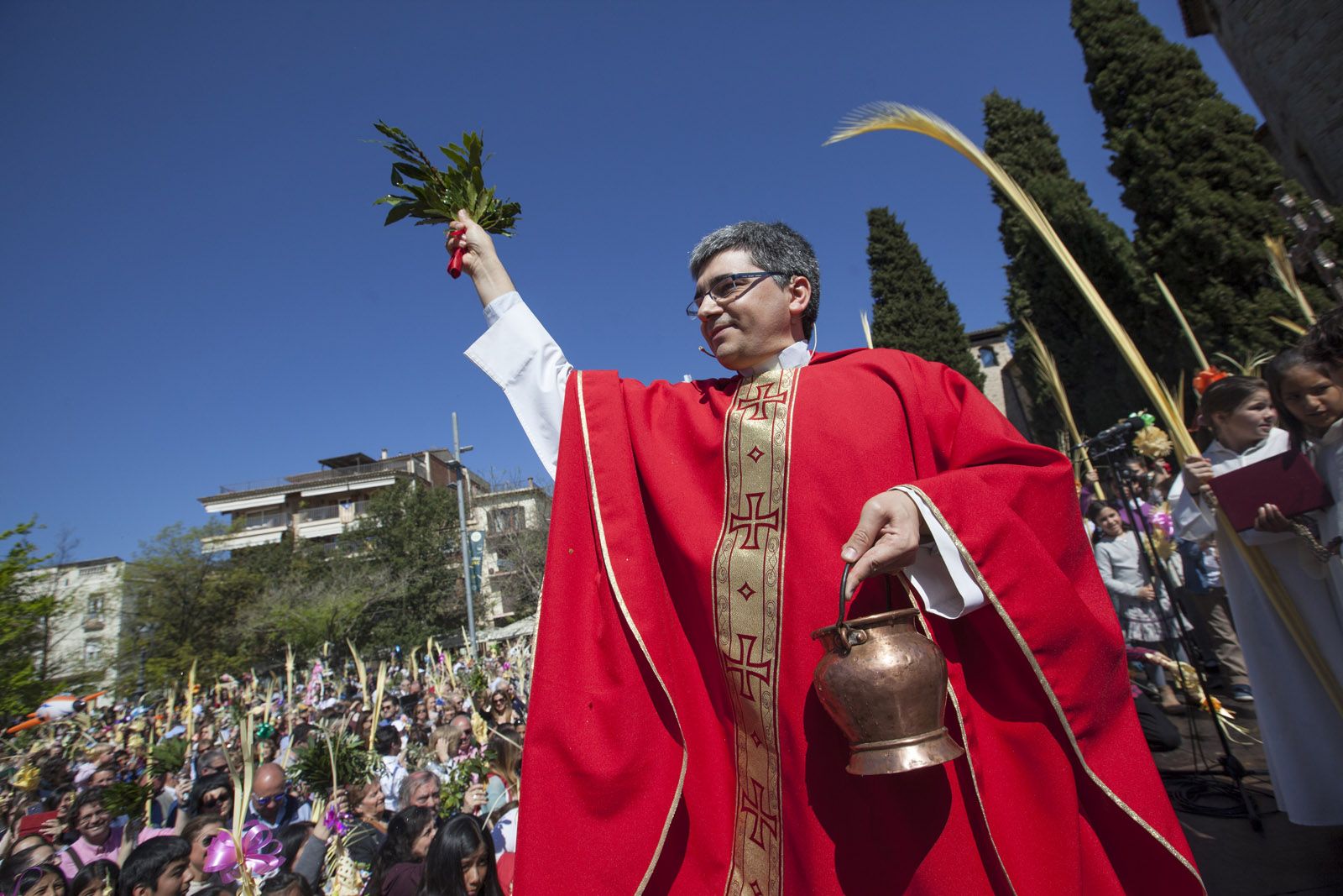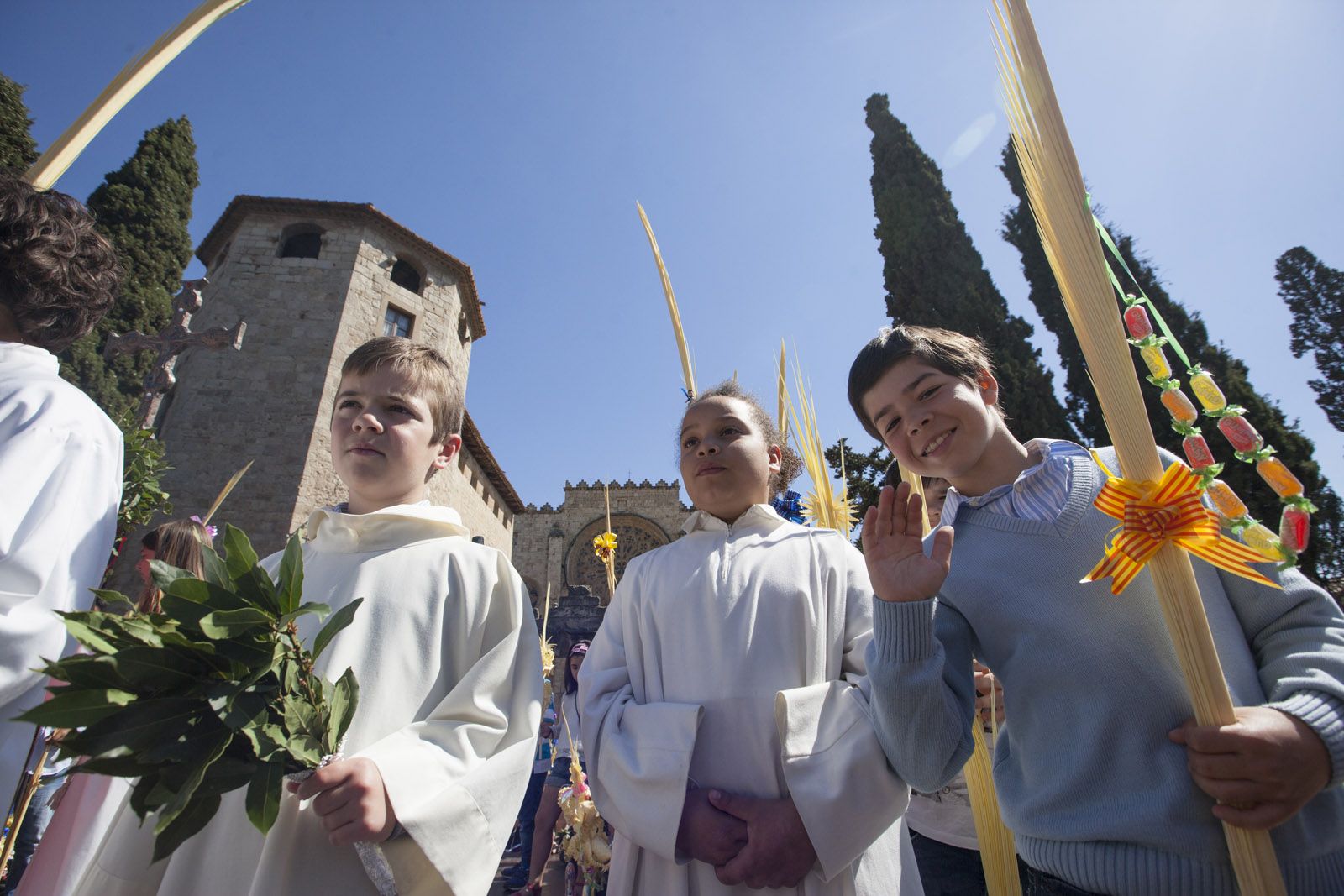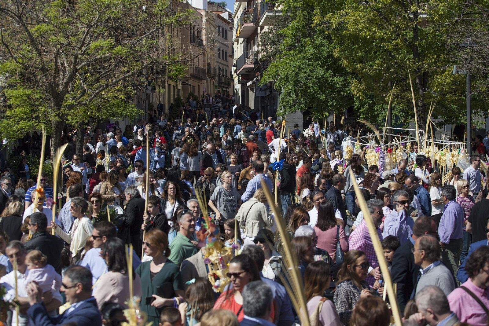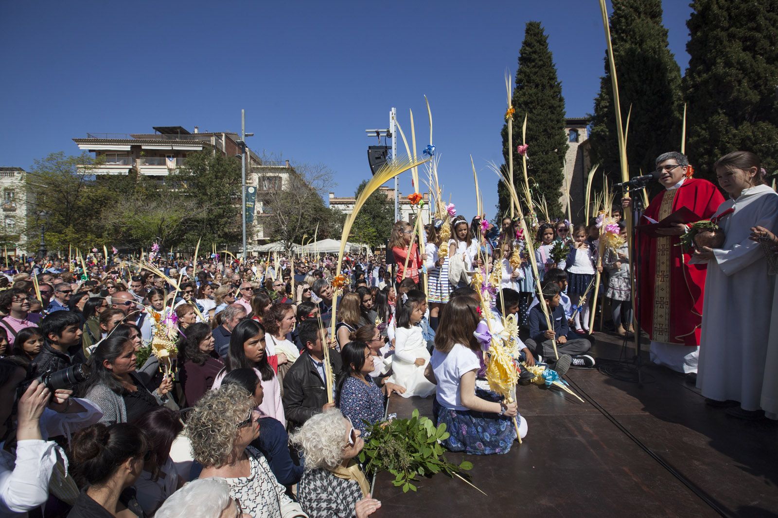 Diumenge de Rams: benefició de les palmes i els palmons a la Plaça d’Octavià. FOTOS: Lali Puig