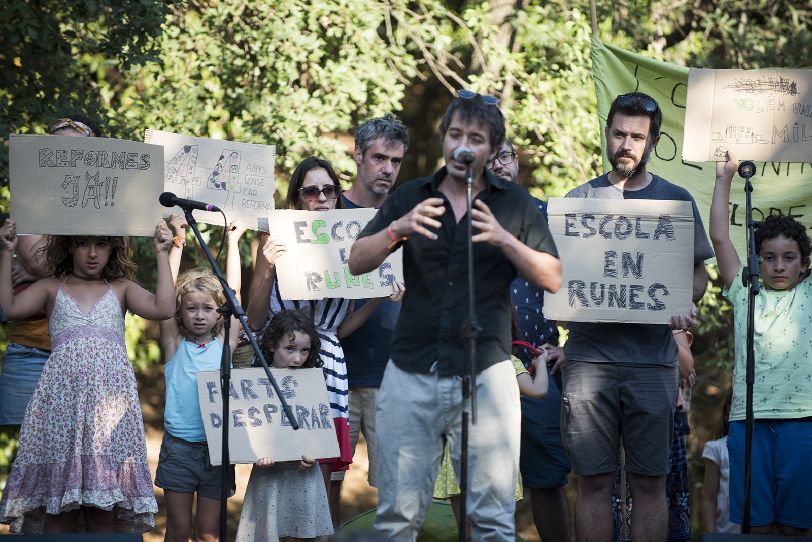 Famílies de l'Escola La Floresta han reivindicat una millora en l'equipament durant la Festa Major de La FLoresta. FOTO: Bernat Millet.