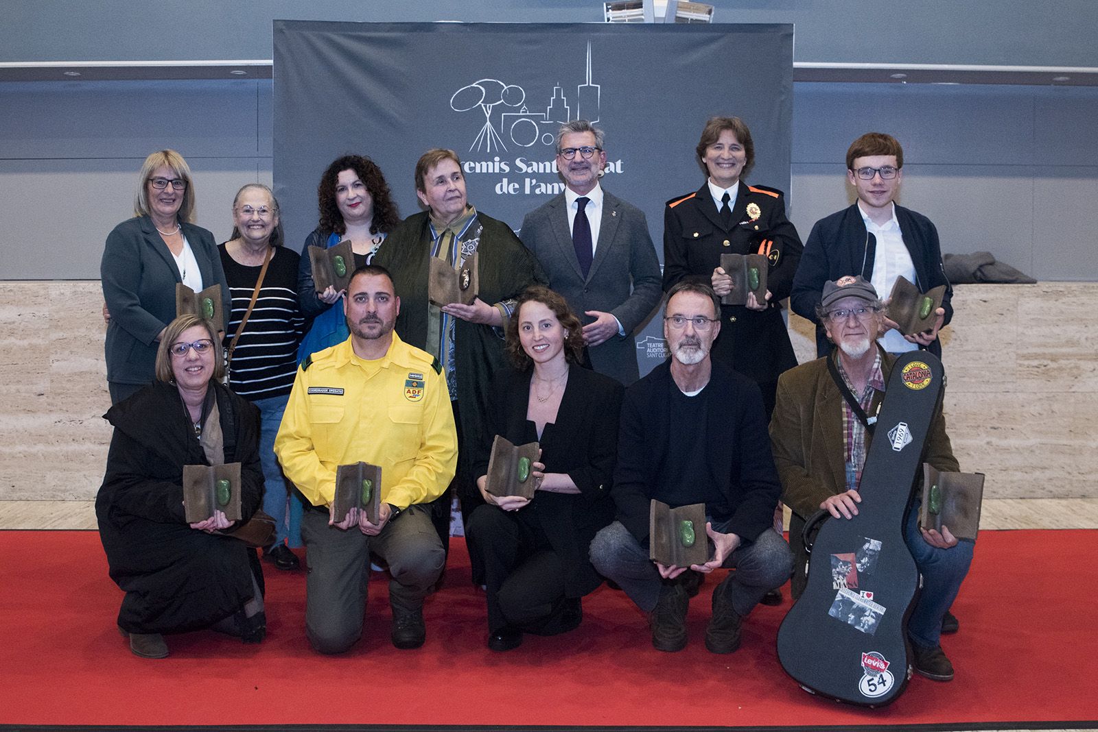 Foto de família al photocall dels premiats amb l'alcalde. FOTO: Bernat Millet.