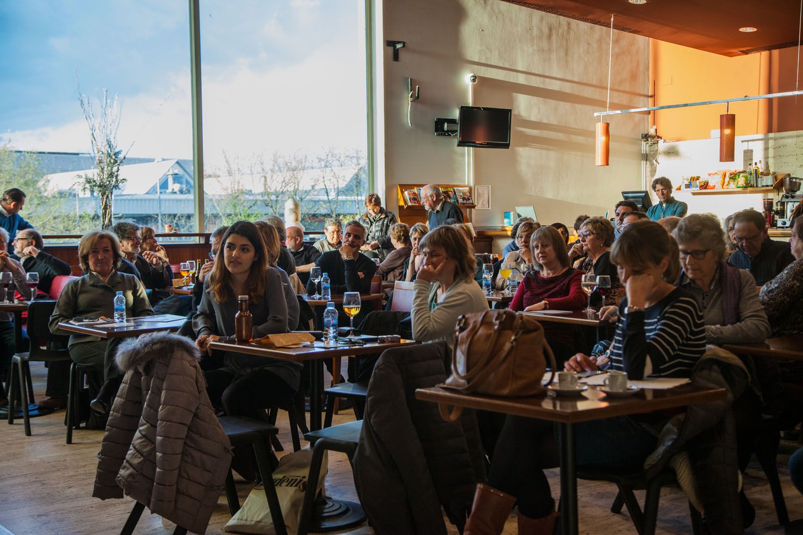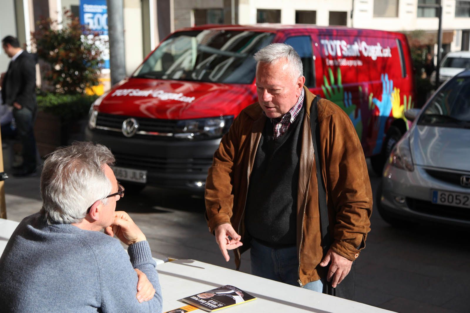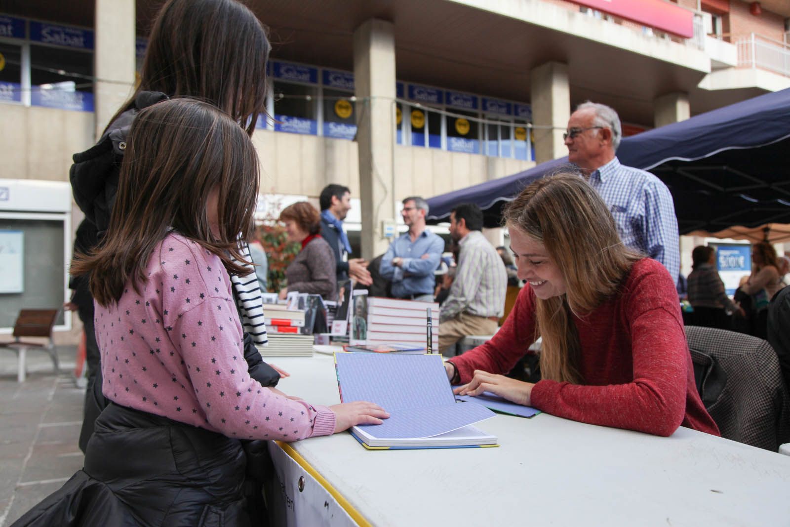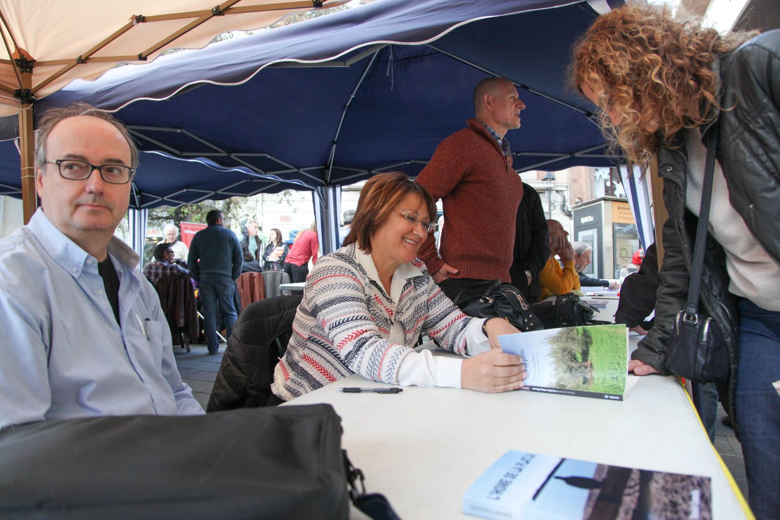 La Taula d'Escriptors locals a la plaça dels Quatre Cantons FOTOS: Lali Puig
