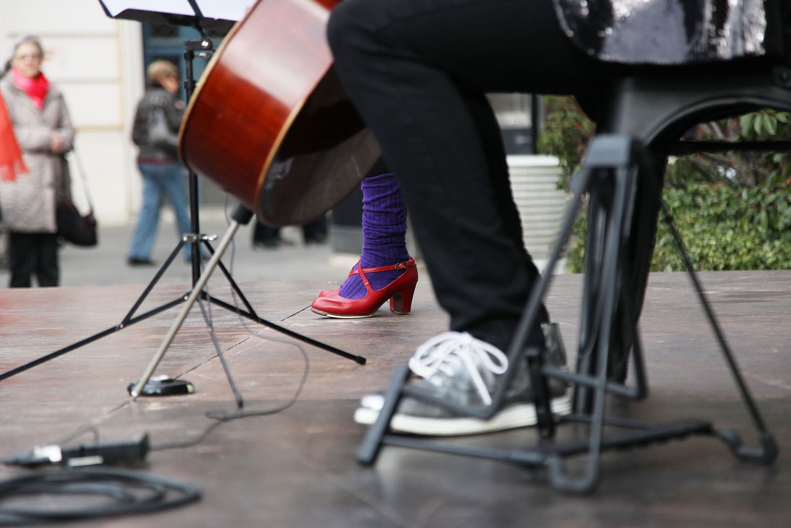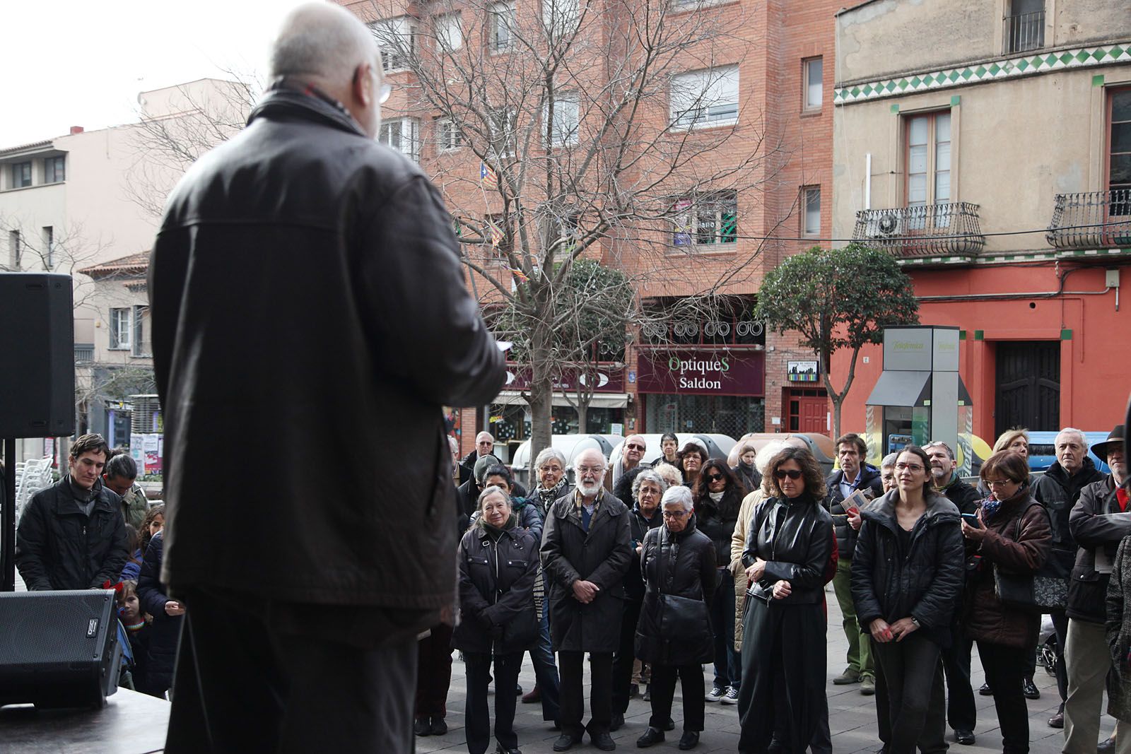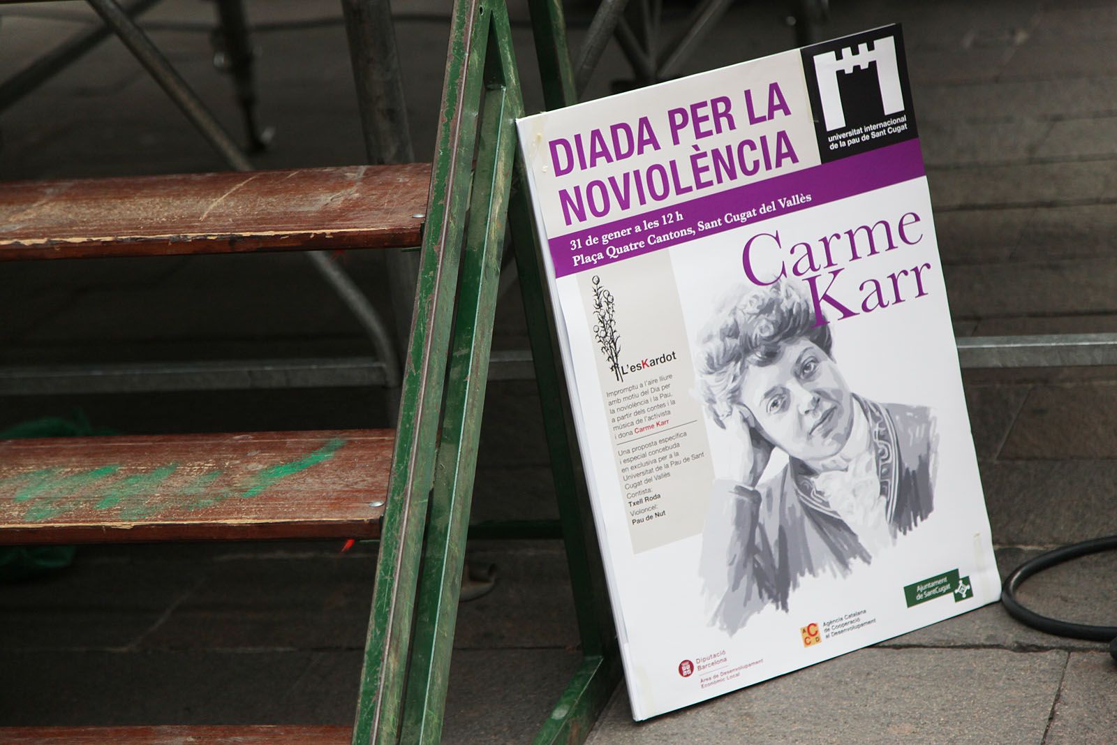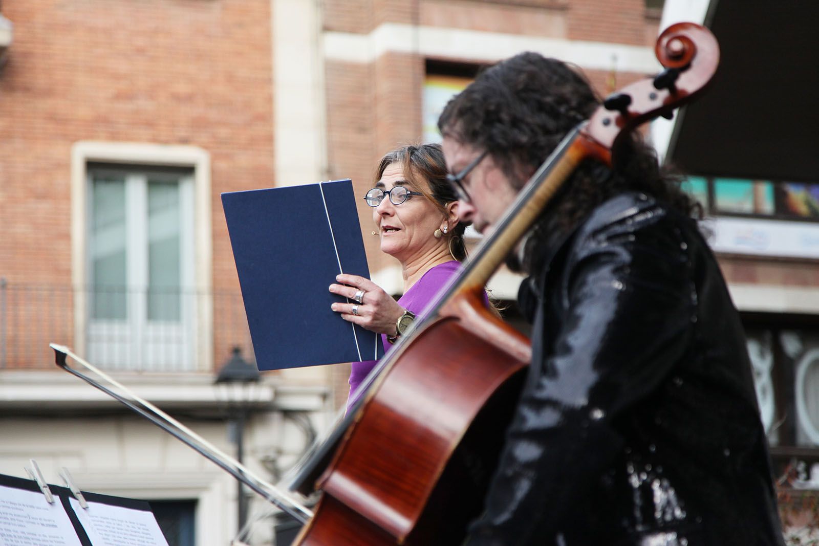 Diada de la No Violència de la Unipau: representació teatral a partir de textos de Carme Karr a la Plaça dels Quatre Cantons. FOTOS: Lali Puig