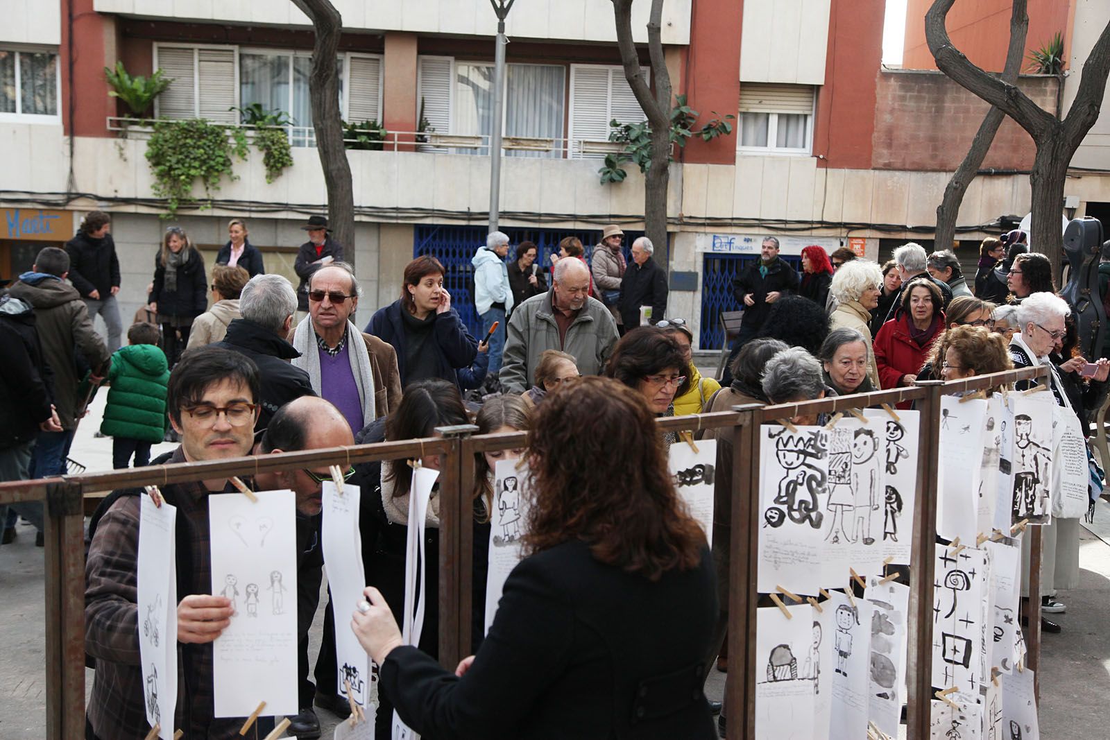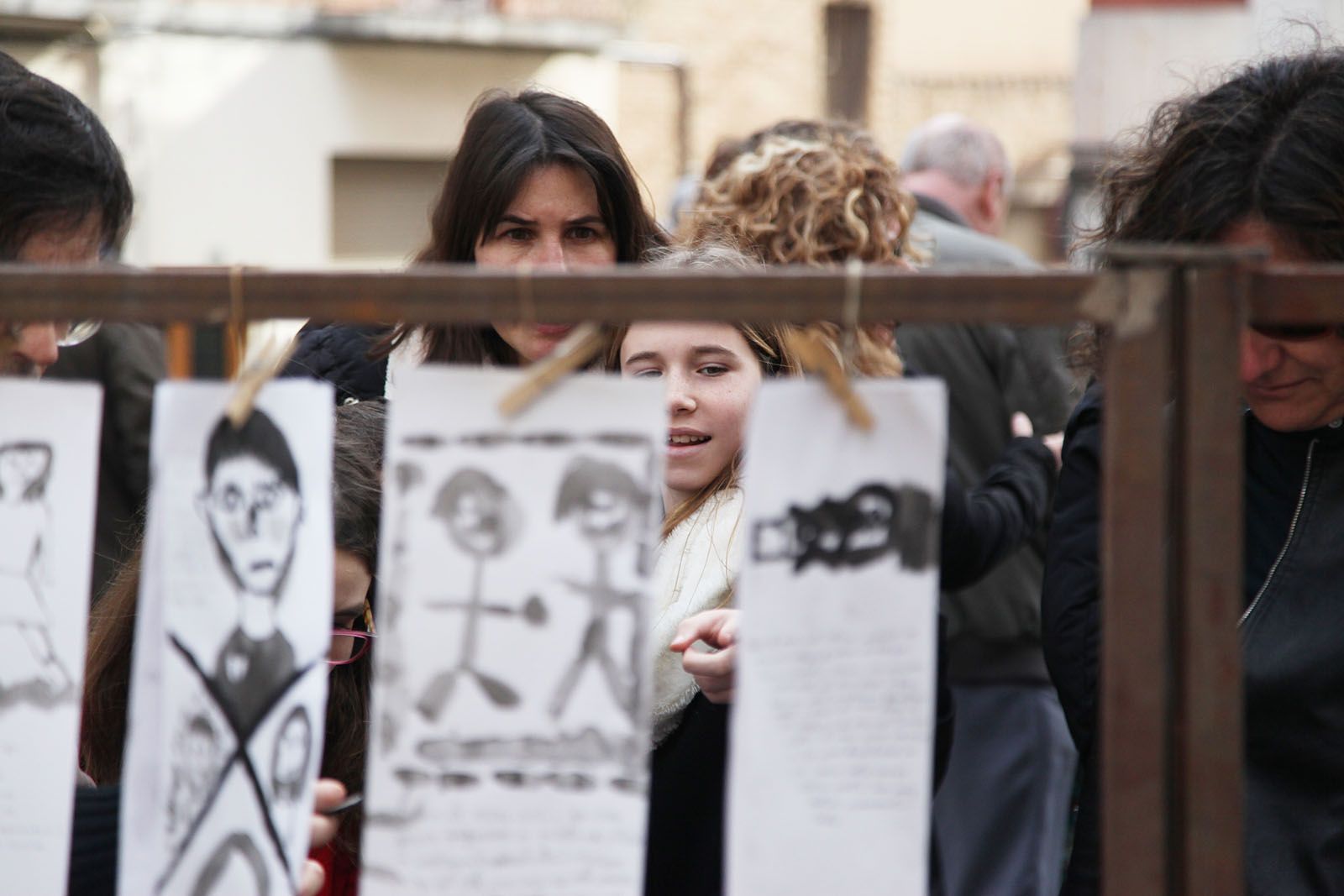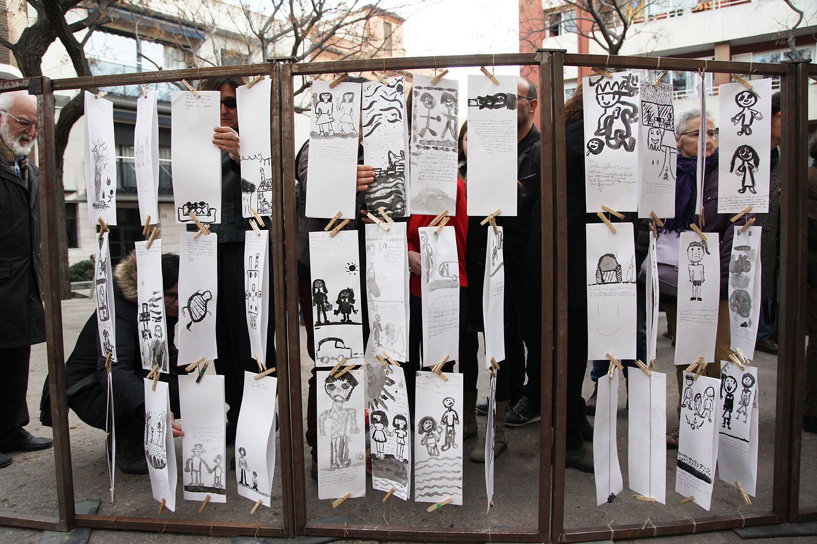 Diada de la No Violència de la Unipau: Exposició dels resultats artístics d’alumnes de primària a la Plaça Magí Bartralot. FOTOS: Lali Puig