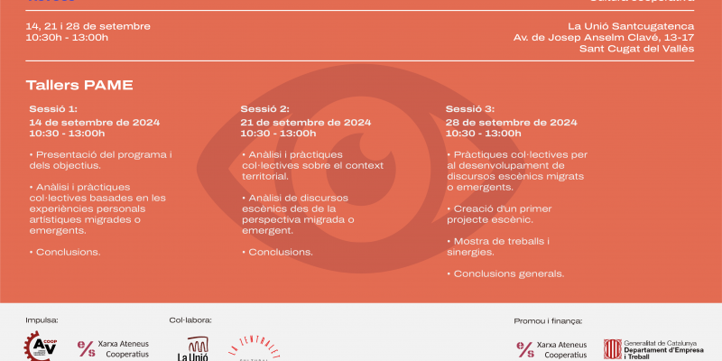 A través de 3 sessions (14, 21 i 28 de setembre de 2024 de 10.30 a 13 h), el programa es desenvolupa des de l’anàlisi i les pràctiques col·lectives fins a la creació d’un primer projecte escènic i una mostra dels treballs i sinergies.